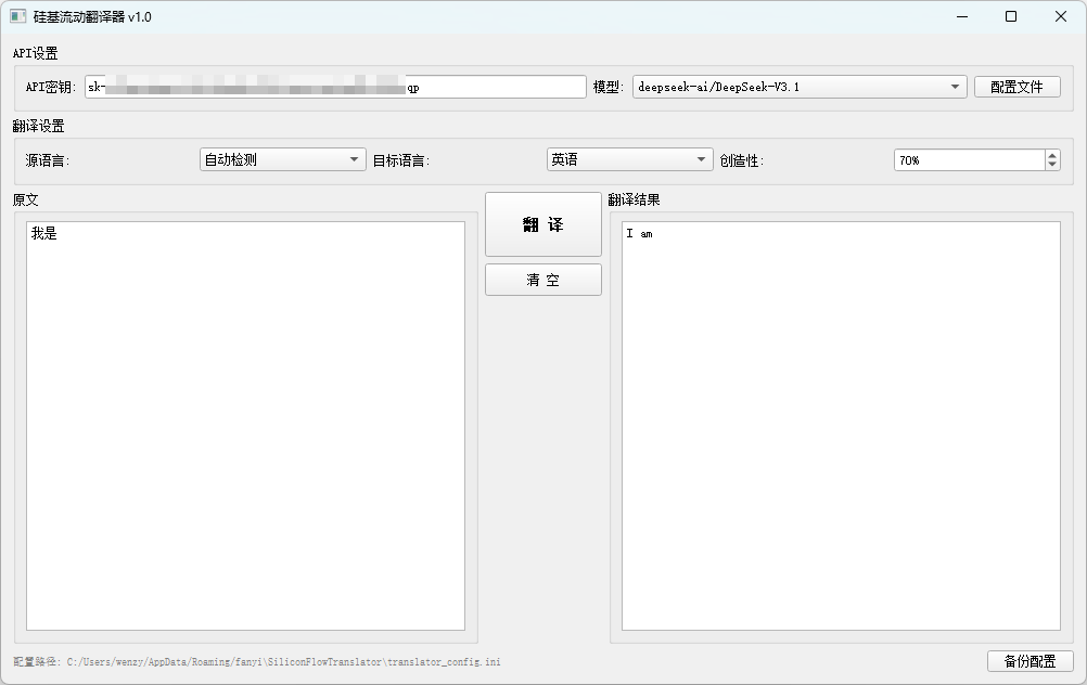 硅基流动 的余额还有很多,就想着调用API来做一些好玩的、实用的工具。正巧在学习Python,所以就搞出来一款翻译工具。
