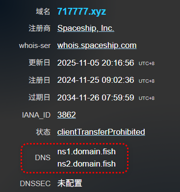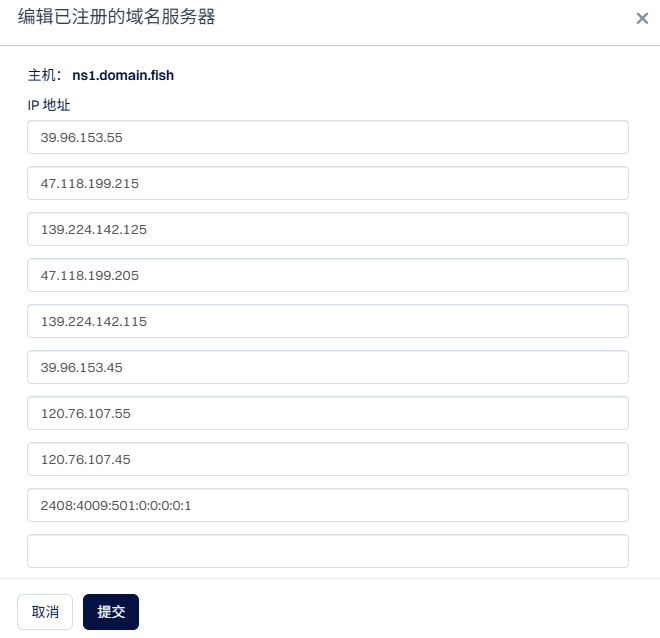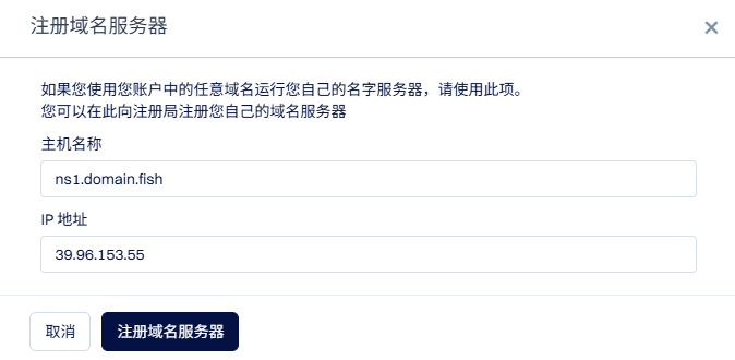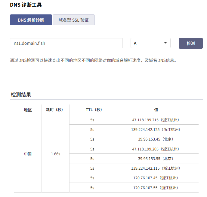 我的 ns1.domain.fish = 阿里 ns1.alidns.com
